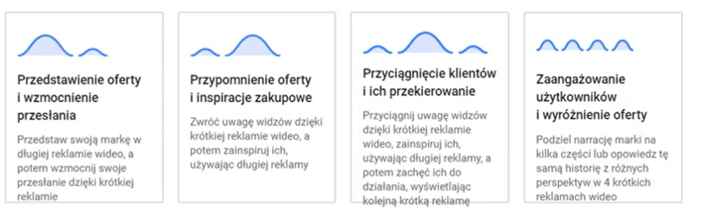 Dostępne formaty reklam do kampanii sekwencyjnej YouTube: