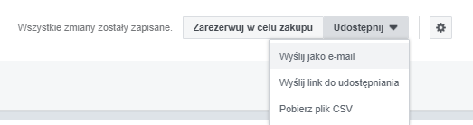 Udostępnić plan bezpośrednio z poziomu konfiguratora kampanii można na 3 sposoby: wysyłając maila, wysyłając link do planu lub ściągnąć plan jako plik CSV. Użytkownicy, którym zostanie udostępniony plan mogą wprowadzać do niego zmiany bez wpływu na pierwotną wersję planu. Osoby te mogą też dokonać zakupu pod warunkiem, że przy udostępnianiu miały nadane takie pozwolenie.