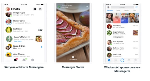 Messenger, podobnie jak Facebook i Instagram, umożliwia publikowanie reklam w relacjach. Są to pełnoekranowe reklamy wyświetlane między relacjami znajomych użytkownika.